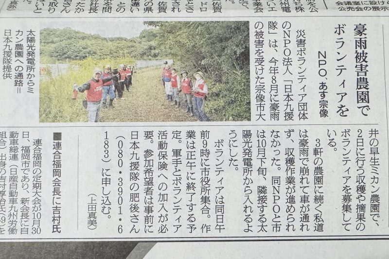 NPO法人「日本九援隊」は、東日本大震災を契機に、「九州を援く、日本を九州から援く」という熱き志を抱き発足した、福岡を拠点とする災害ボランティア団体です。