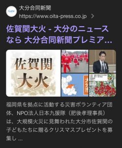 〜九州豪雨被災地の子供たちと佐賀関大火で避難されている皆様や佐賀関小学校などの子供たちにお届けするクリスマスプレゼント・募金・サンタ参加者を大募集しています!〜